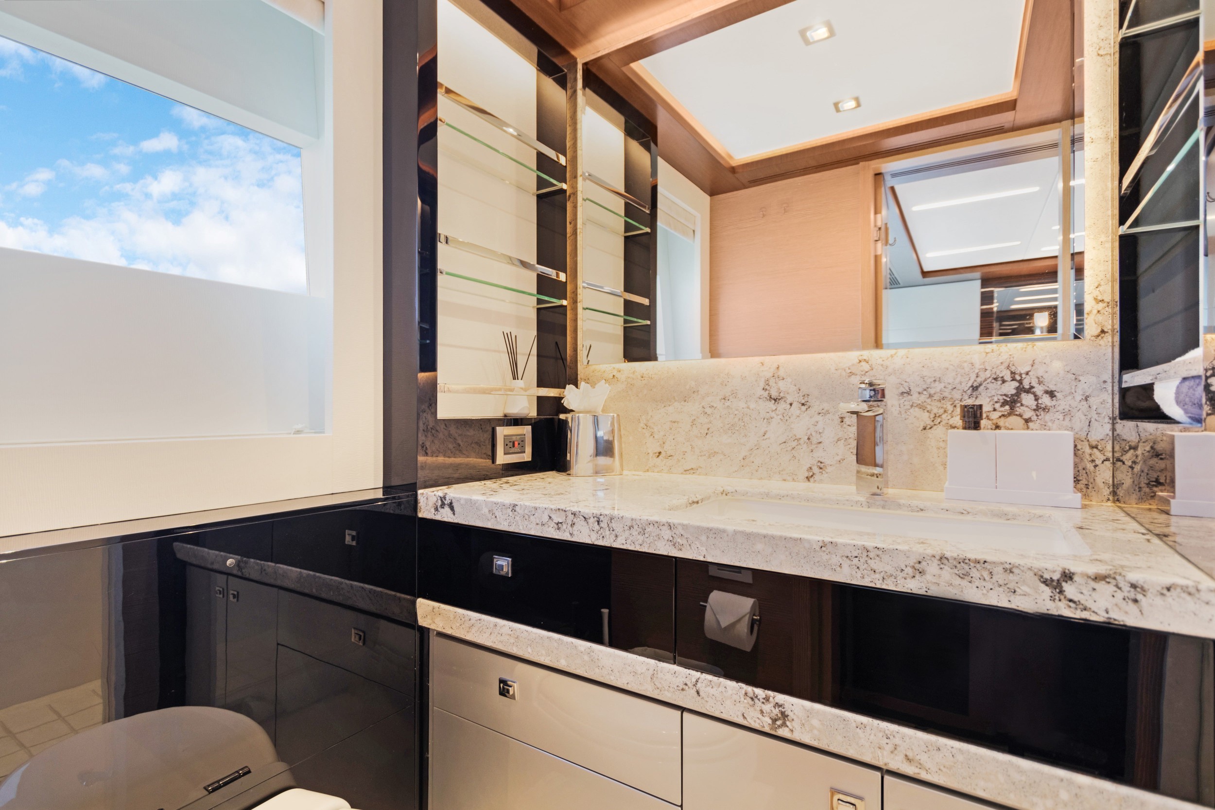 This exceptional charter yacht offers expansive spaces thoughtfully designed for both relaxation and entertainment. Guests can unwind in complete comfort with features such as a skylounge that opens to a generous sundeck with a Jacuzzi, a welcoming aft beach club, and an elegant alfresco dining area perfect for enjoying meals with panoramic views. The foredeck provides an additional sunbathing and lounging area, ideal for soaking in the scenery.